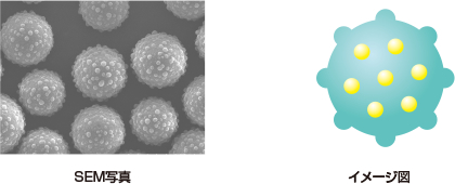 - ラズベリー状形状の突起により接触面積が小さくなり球状粒子よりも感触が向上。